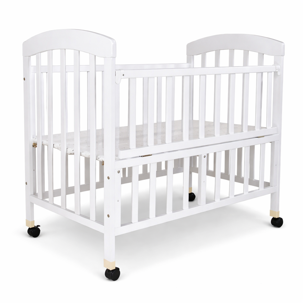 Adjustable Wooden Baby Cot with Wheels – White