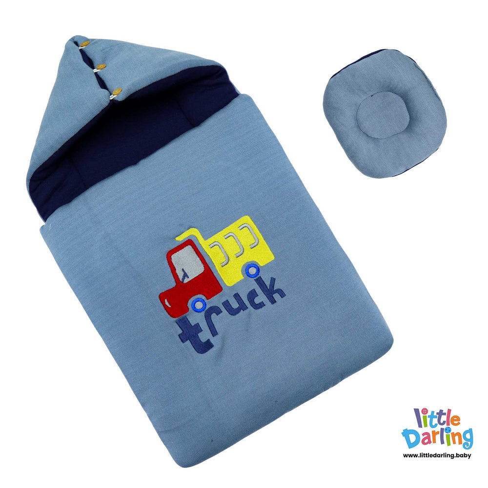 Buy Baby Carry Nest Hooded Truck Embroidery Blue Color by Little Darling in Pakistan