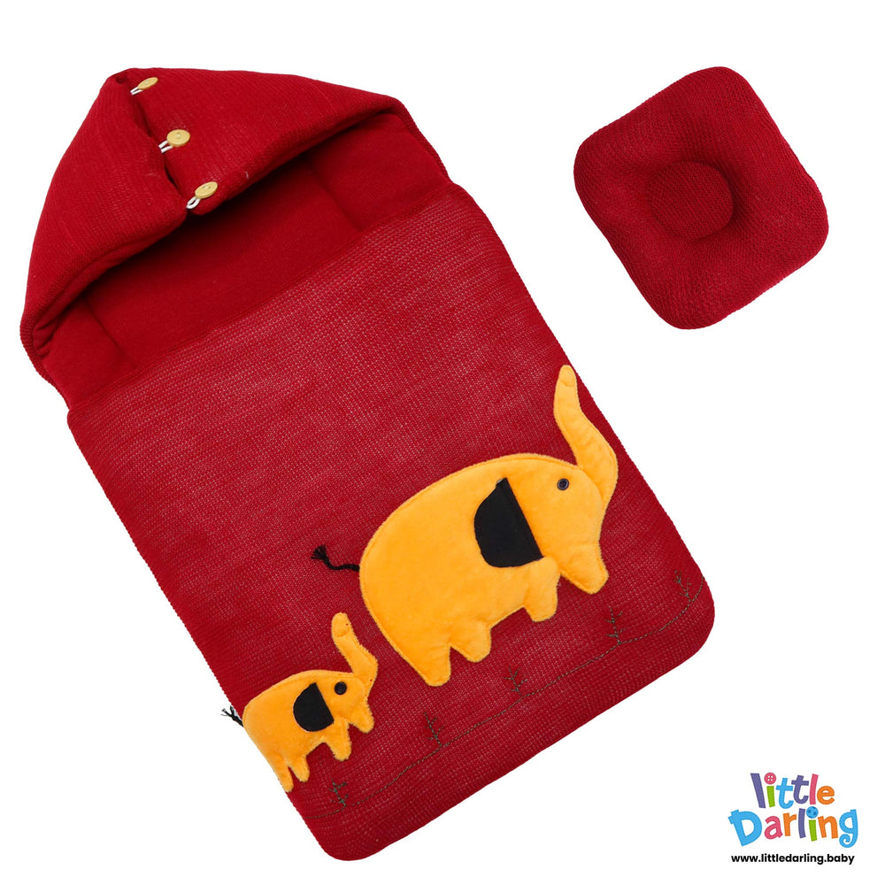 Buy Baby Carry Nest Hooded With Pillow Elephant Embossed Red Color by Little Darling in Pakistan