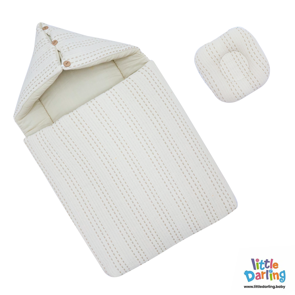 Buy Baby Hooded Carry nest Beige Stitch Line Print by Little Darling in Pakistan