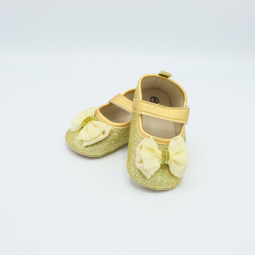 Buy Baby Shoes Gold Color With Yellow Bow in Pakistan