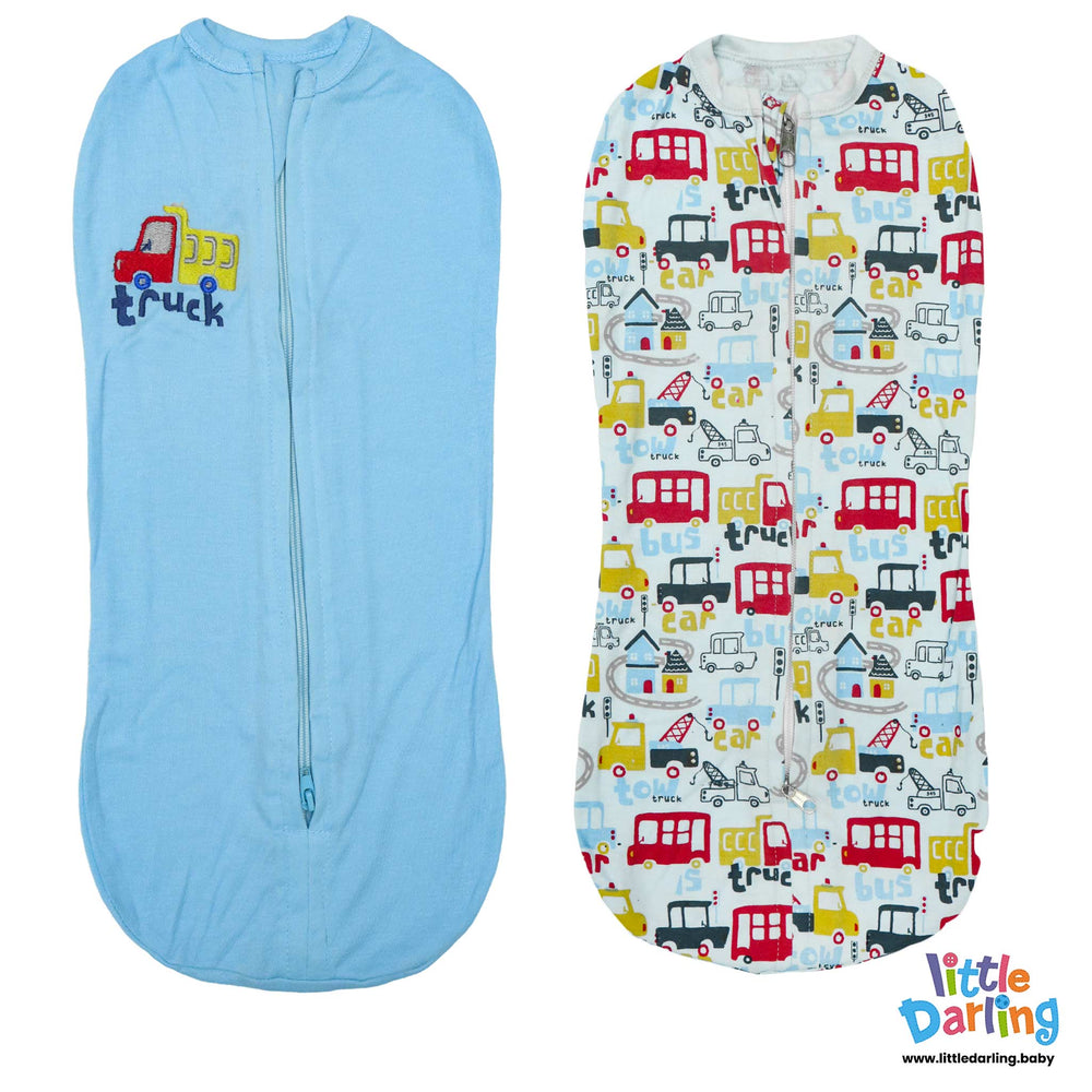 Buy Baby Swaddle Pk of 2 Truck & Car Sky Blue Color by Little Darling in Pakistan