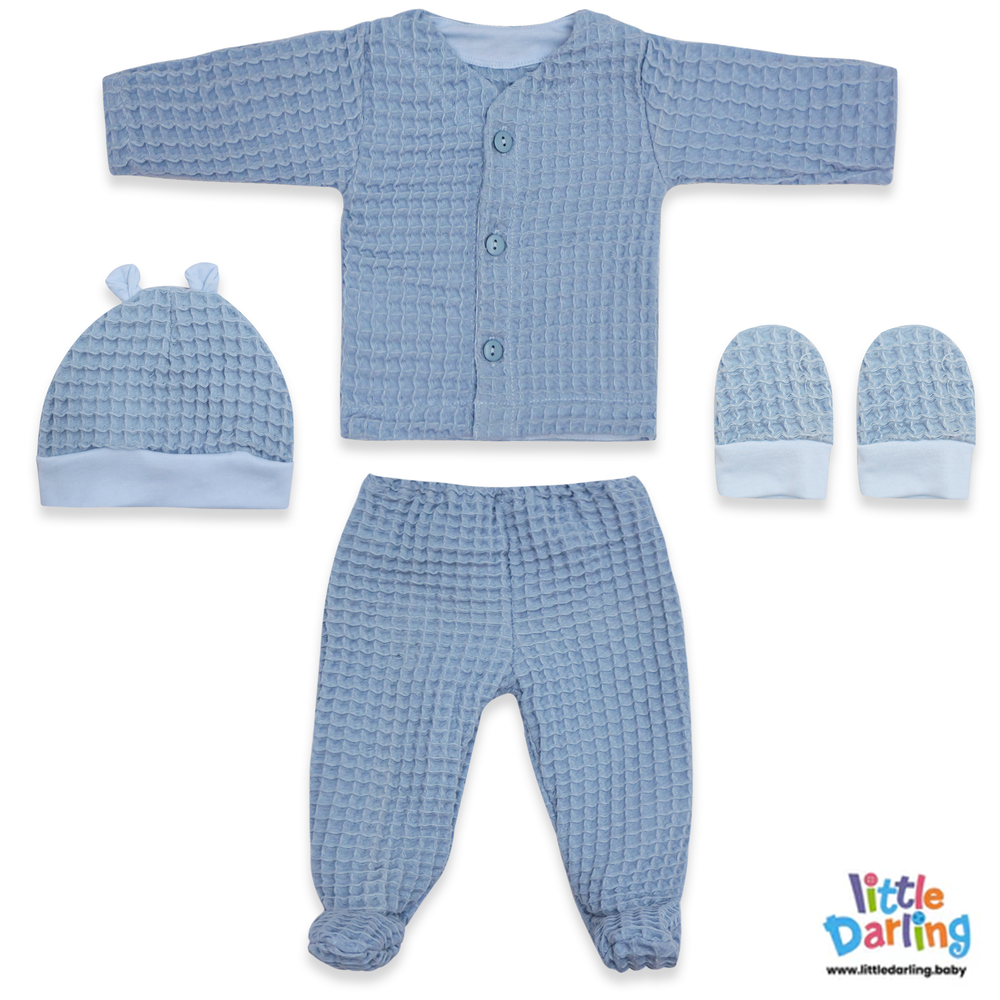 Buy Baby Woolen Waffle Knit 4-Piece Giftset Blue by Little Darling in Pakistan