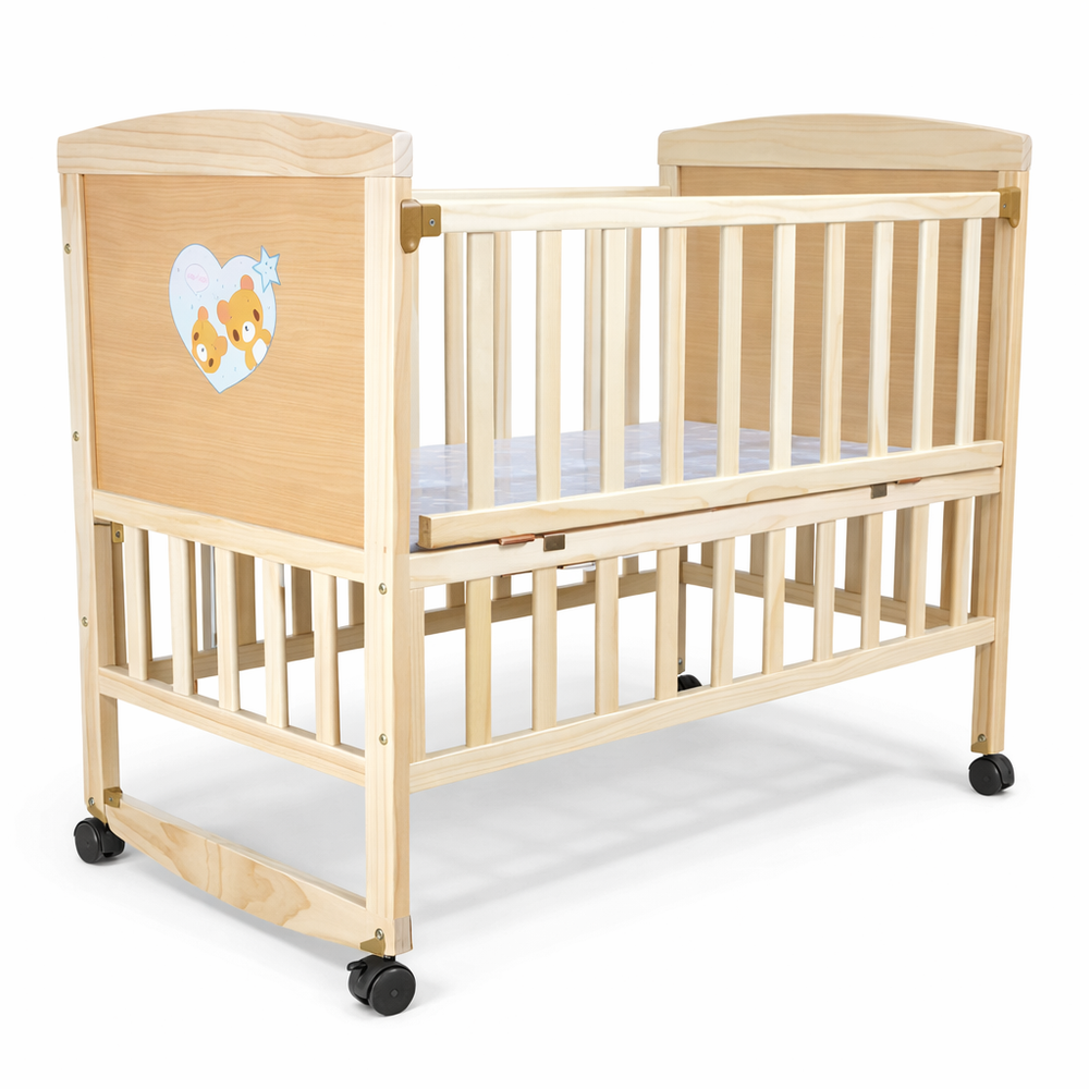 Buy Baby Wooden Cot with Cartoon Design & Lockable Wheels in Pakistan