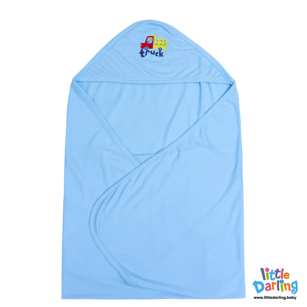 Buy Baby Hooded Wrapping Sheet Truck & Car Sky Blue Color by Little Darling in Pakistan