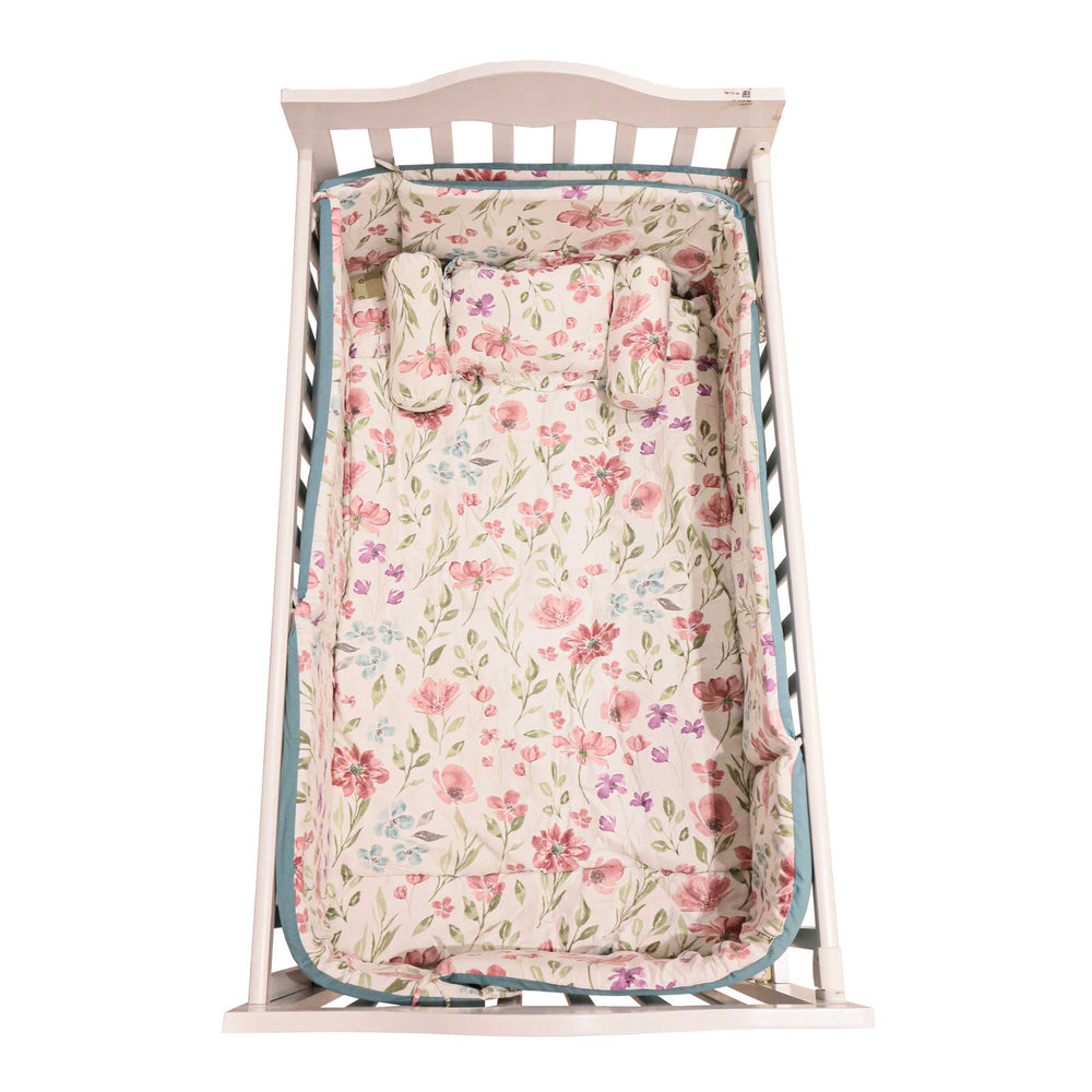 1 x Cot Bumper's & Bedding Set Flower Print by Little Darling