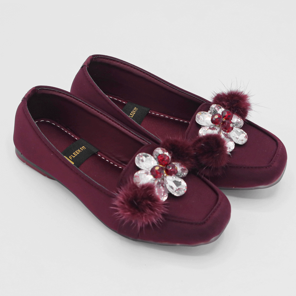 Buy Girls Fancy Flower Pumps Maroon in Pakistan