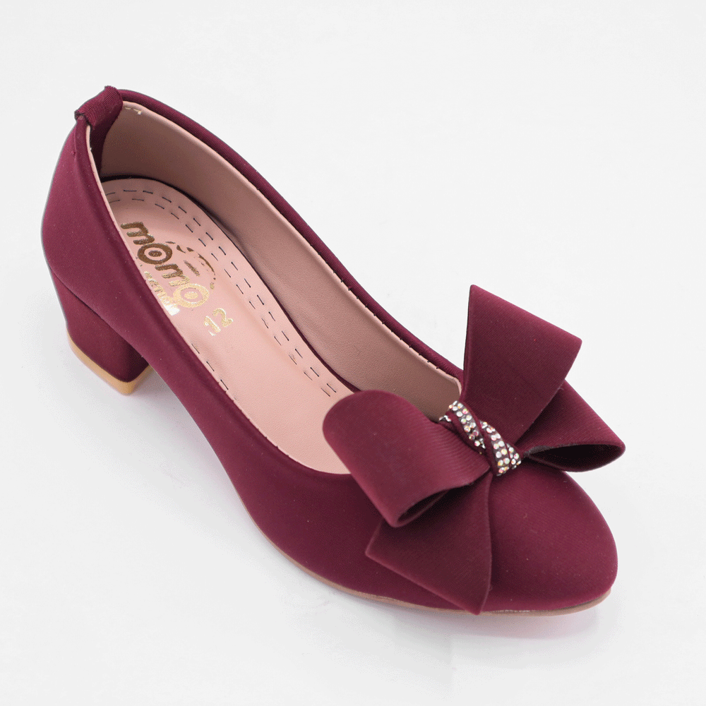 Buy Girls Burgundy Bow Block Heel Pumps in Pakistan