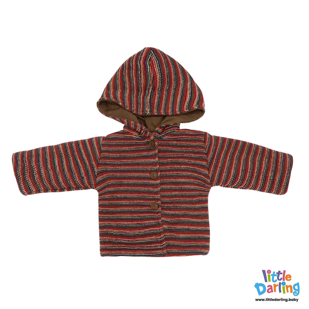 Buy Hooded Jacket Multi Stripes Brown Color by Little Darling in Pakistan