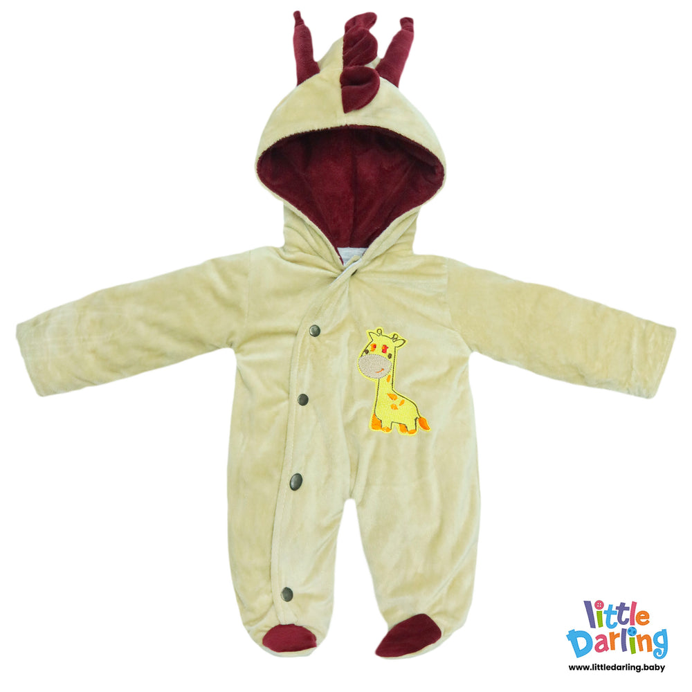 Keep your little darling warm and stylish with our Hooded Velour Romper featuring adorable Giraffe Embroidery in a delightful cream color. Specifically designed for premature babies and newborns up to 6 months, this romper ensures your baby's comfort and style throughout the winter season.
