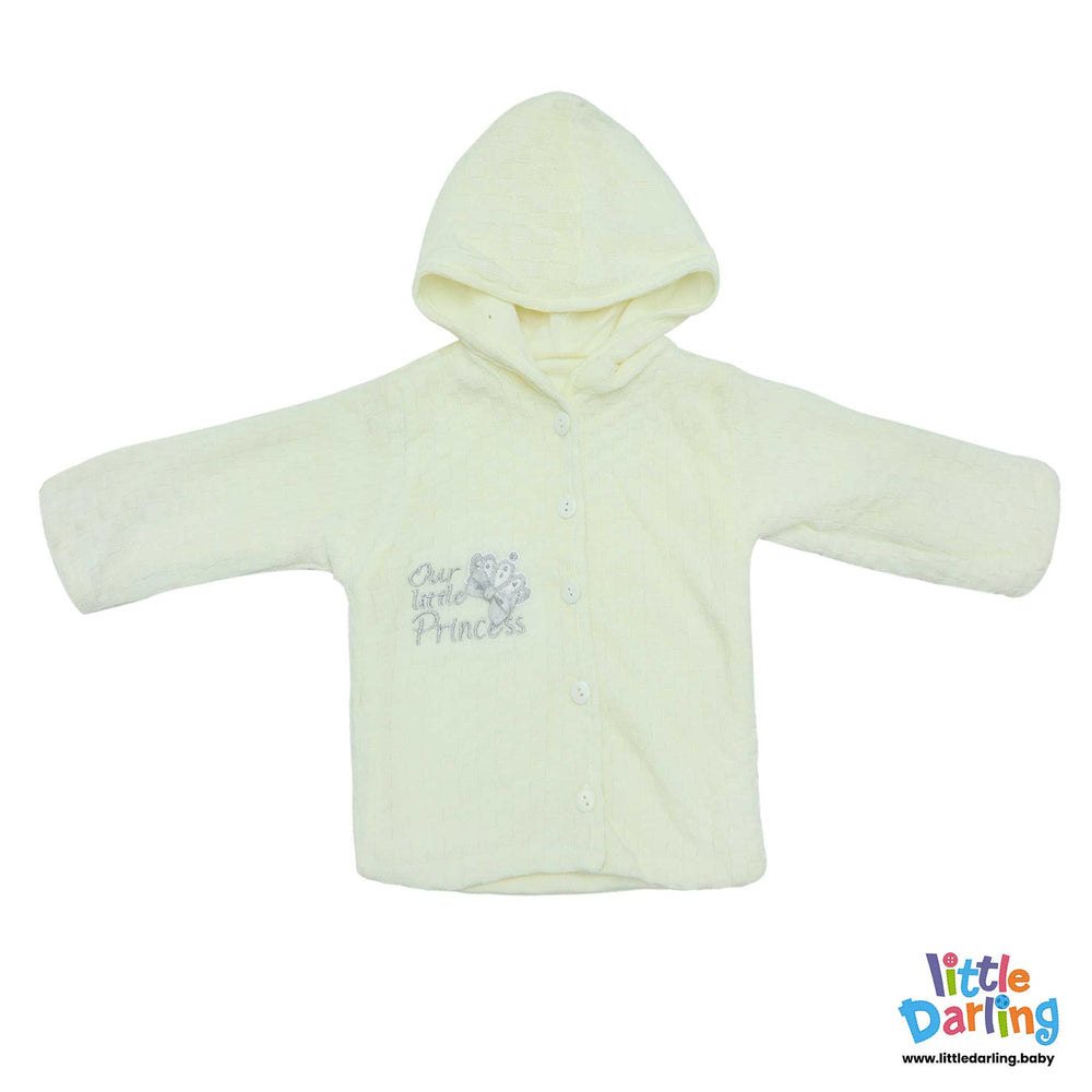 Buy Hooded Woolen Jacket Our Little Princess Embroidery Off White Color by Little Darling in Pakistan