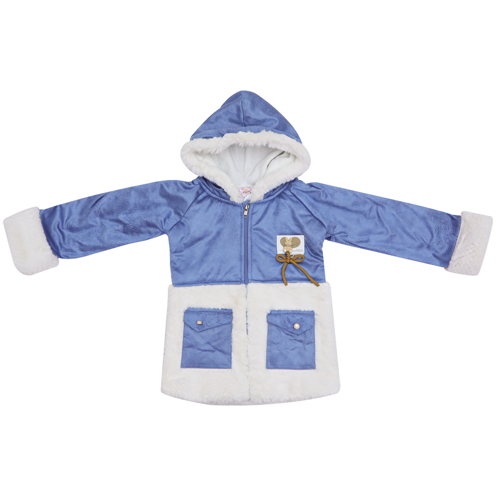 This soft and warm faux fur hooded jacket is perfect for keeping your little one cozy during the colder months. Designed with a stylish zip-up front and two functional pockets, it features a plush faux fur trim on the cuffs, hem, and hood for added warmth and comfort. The neutral baby blue color makes it easy to pair with any outfit, while the luxurious fabric ensures a comfy fit all day long. Ideal for chilly weather, this jacket will be a go-to piece for your child's winter wardrobe.