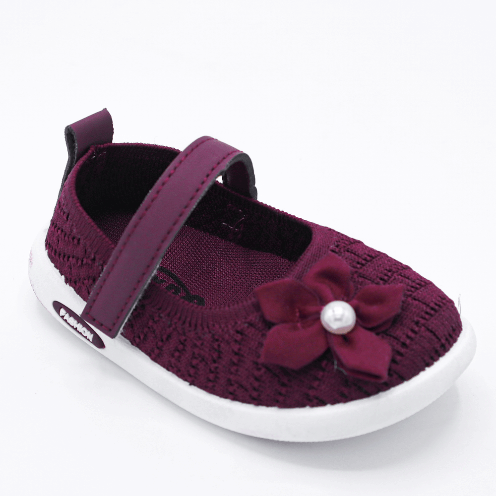 Buy Kids Maroon Knit Casual Shoes with Flower Strap in Pakistan