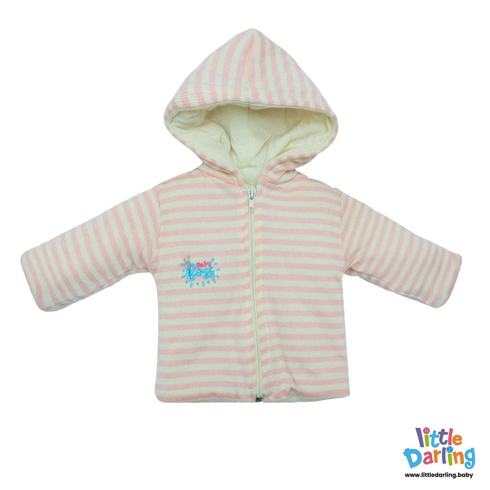 Woolen Hooded Jacket Baby Boss Embroidery Pink Stripes by Little Darling